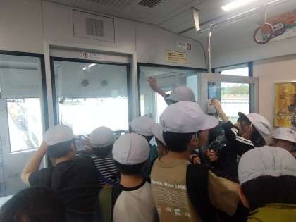 見学を終え、モノレールに乗って帰りました。行きと同じように運転席の後ろで景色を楽しんでいました。みんなルールを守って見学して充実した遠足になりました。