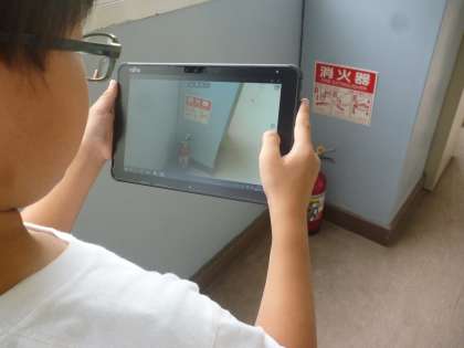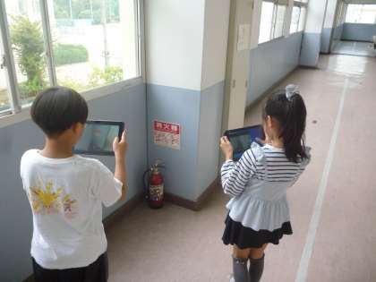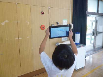 3年生は校内をまわり、消火器や火災消火器などの防火設備を探して写真に収めていきました。校内のいたるところに防火設備があることに気づくことができました。