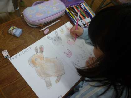 国語は動物について調べており、その絵を描いていきました。文章はすでに書き上げています。