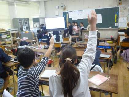 「お寿司」のグループはクイズを2問だし、みんな手を挙げて答えを言っていました。