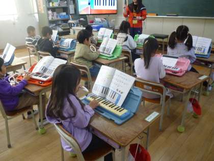 パフォーマンスショーの感想を言おう、鍵盤ハーモニカを吹こう(1年生)
