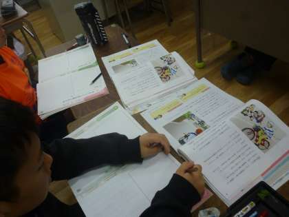 4年生は道徳で「ほんとうに上手な乗り方とは」の学習をしました。この話は交通安全教室で交通安全協会の方々から安全な自転車の乗り方を学ぶという内容です。その人たちの願いは何かを考えていき、安全に自転車に乗ることの大切さを再確認しました。最後は自分の考えを交流し合いました。
