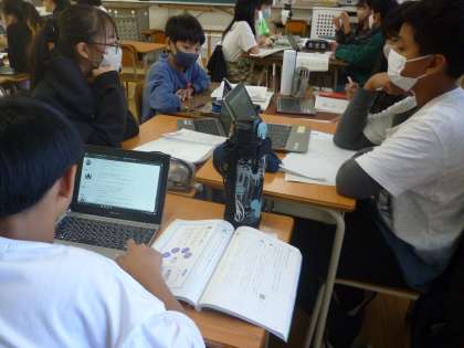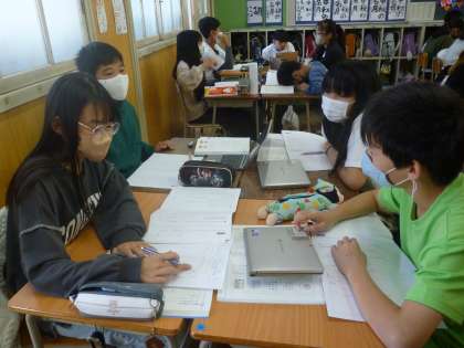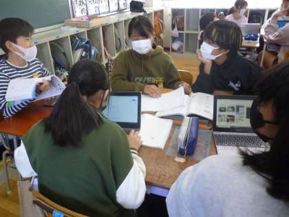 6年生は国語でプレゼンテーション作りに取り組んでいます。テーマは「学校生活をよりよくする工夫」です。グループで各自のアイデアを出し合って話し合いました。