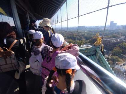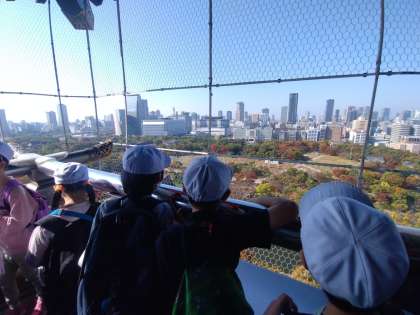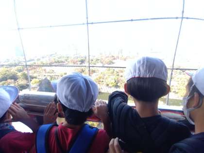 階段を使って最上階に着きました。さっそく紅葉の始まった公演を眺めます。