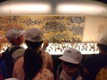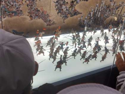 館内は合戦のジオラマやバーチャル映像で、当時の様子を再現していました。マスコミの報道の通り、多くの外国の方でとても混雑していました。