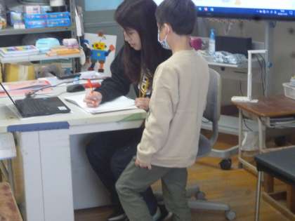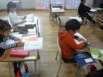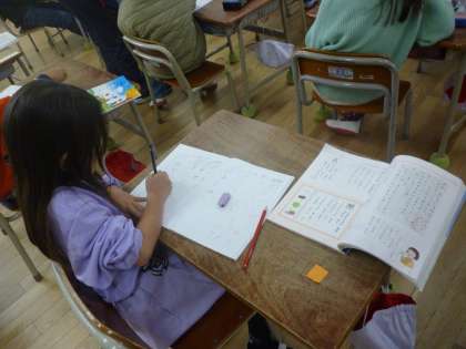 1年生は作文の力がついてきました。今日は「楽しかった思い出を順番に気をつけて書こう」という目標で作文を書いていきました。