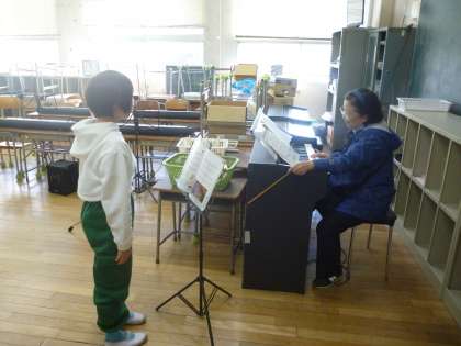 4年生は「もみじ」の歌のテストをしました。きれいな声で歌おうとがんばっていました。