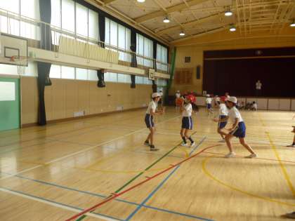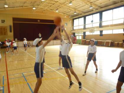 6年生はbasketを始めました。もう慣れてきているのでパスやシュートもたくさん決めていました。