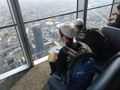 今日は天気が良く、南港もよく見えました。大阪市の北側にビルが多い事にもよく気づいていました。それほど混んでいなかったので、景色がよく見えて充実した社会見学になりました。