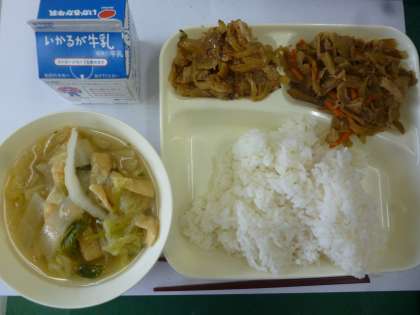 11月27日の給食は「鶏肉の梅風味焼き」「うすくず汁」「きんぴらごぼう」です。きんぴらごぼうのおいしさは格別で、次に食べる機会が待ち遠しいです。