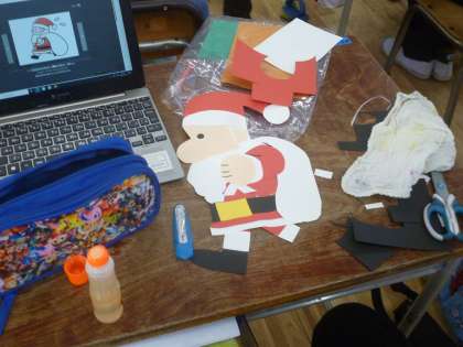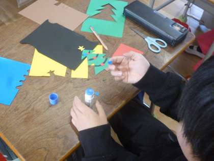 2年生は作品展の部屋の飾りを作りました。画用紙を切ってきれいに作っていました。季節柄、クリスマスの飾りが多かったです。