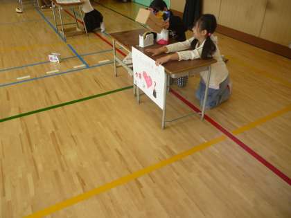 1年生を招待して、自分たちが作ったおもちゃで遊んでもらう「おもちゃランド」がいよいよ明日に迫りました。今日は、会場である講堂で準備をしたり、お店番の練習をしたりしました。今まで準備を頑張ってきたので、明日の本番が楽しみです。