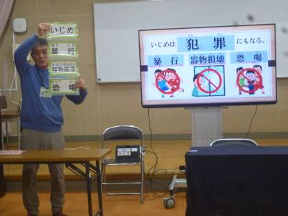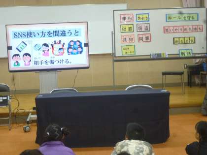 5年生は大阪市の少年サポートセンターの方に「非行防止教室」をしていただきました。万引きなどの犯罪に当たること、SMSの正しい使い方など、非行は絶対にいけないことといううことを教えていただきました。特に「いじめ」も犯罪であることも強調されていました。
