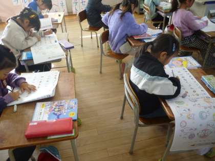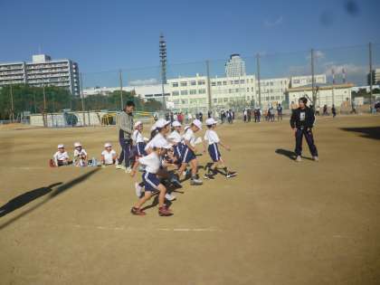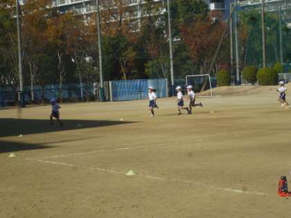 1年生は持久走を続けています。寒さに負けず運動場を10周走り切りました。