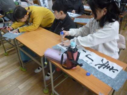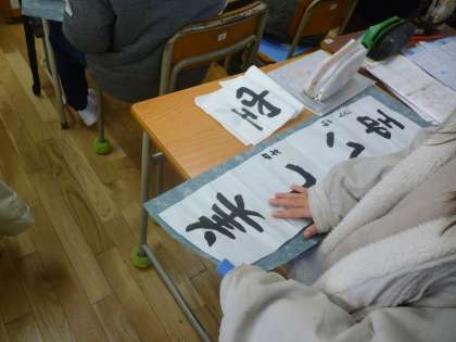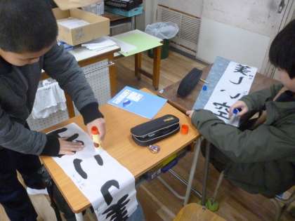 書き初めの仕上げ(4年生)