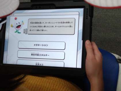 カーボンニュートラルを目指して、自分たちでできる事を考えて、代表が発表しました。エネルギーや地球温暖化について考える事ができた見学となりました。次は漁協に行きます。