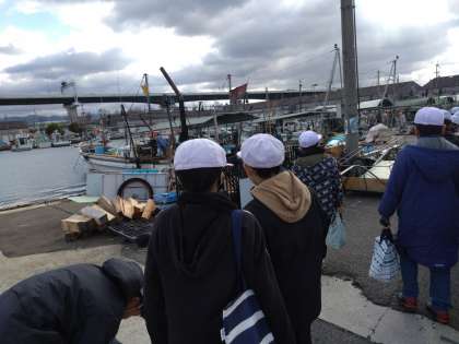 今日は、強風で漁船が出港できないため、見学予定の魚の競りを見ることができませんでした。その代わりに、普段は入る事のできない漁船の波止場を見学しました。とても充実した実りのある社会見学になりました。