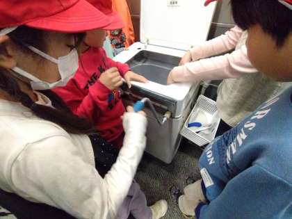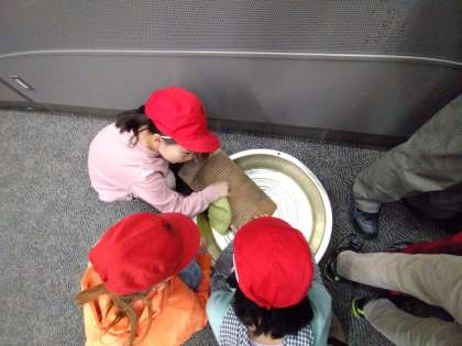 3年生は「くらしの今昔館」に社会見学に行きました。まず、昔の道具を見て、触る体験です。