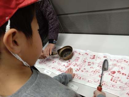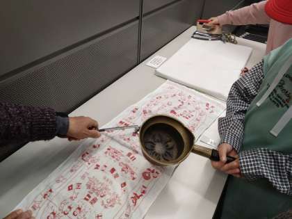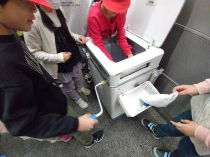 洗濯機の手回しの脱水を体験しました。これは私の小さい頃、自宅で使っていました。アイロンです。炭を入れるなど、電気を使いません。