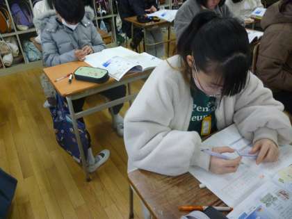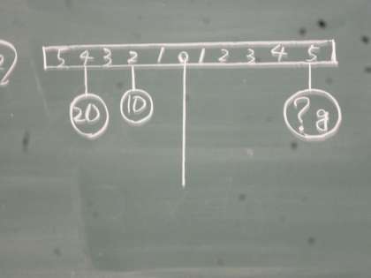 6年生は理科でてこの学習をしています。今日は写真の問題を考えました。ノーヒントで友達とも相談しながら考えていきました。しばらく時間をとって先生が答えを言うと、半数以上の子が正解の手を挙げました。答えは100÷5=20(グラム)です。