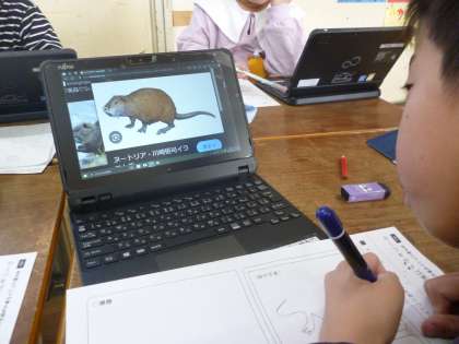 3年生は国語で外来種についての説明文を学習しています。今日はヌートリアやアライグマなど外来種についてインターネットや図鑑で調べていきました。