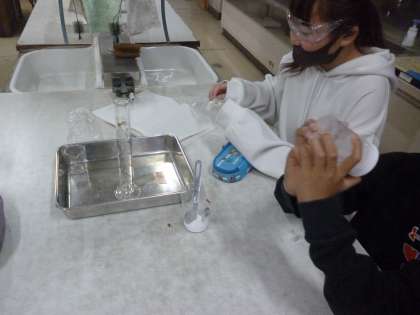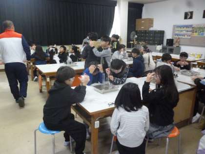 5年生は理科の実験でミョウバンと食塩が水にどれくらい溶けるかを調べました。実験が続いているので、手際よく実験をしていました。