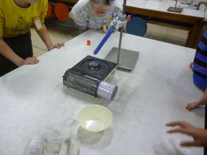 写真のように上部から色が変わっているのがよくわかり、子どもたちもしっかりと確認できました。