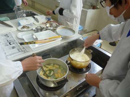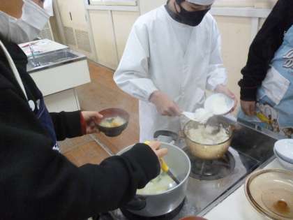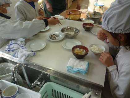 みんなで協力しながら、おいしくできました。出来上がったghantaみそ汁を嬉しそうに「おいしい」と言って食べていました。