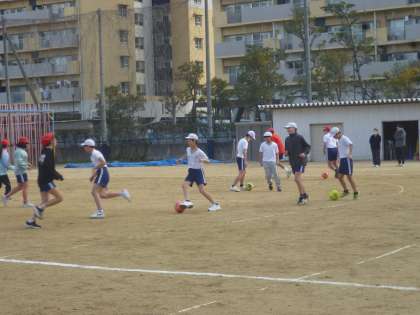 6年生は「セレッソ大阪」の選手、コーチの方に「夢授業」としてサッカーを教えてもらいました。基本的なけり方や、二人組での練習など基本をわかりやすく教えていただきました。最後は試合をして盛り上がりました。「セレッソ大阪」の皆さま、ありがとうございました。