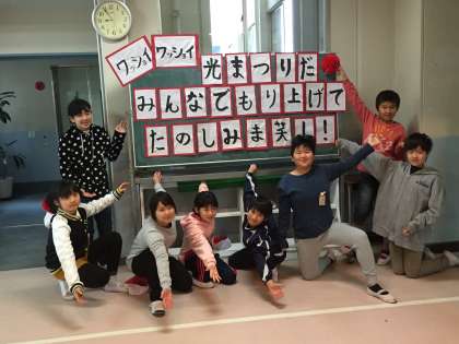1月21日(木)は、子どもたちが楽しみにしている「光まつり」です。児童会の役員の子どもたちが、まつりにむけて玄関に大きなメッセージを書いてくれました。これから、全学級で、お店づくりが始まります。