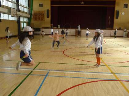 2年生は体育でなわとびの二重跳びを練習しました。こつをつかむまでむずかしい跳び方なので、動画を見て留意点を確認してから、練習をしていきました。何度もあきらめずに練習を続けていく姿が素敵でした。