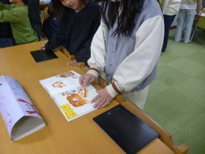 4年生は動物などを粘土で作成します。参考にするため図書館で絵本を探していき、構想を練っていきました。