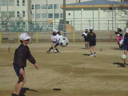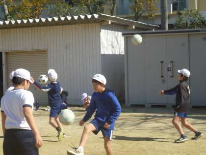 5年生は体育でサッカーを始めました。基本から練習するので、リフティングの練習をしていきました。中には連続していける子もいて、熱心に取り組んでいました。