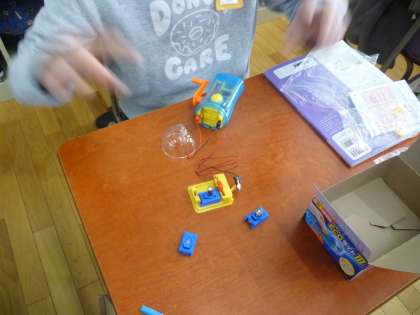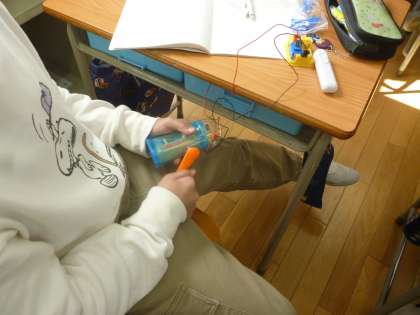 6年生は理科で手回し発電をしています。回した回数やはやさで電球の明るさがどうなるかを調べていきました。