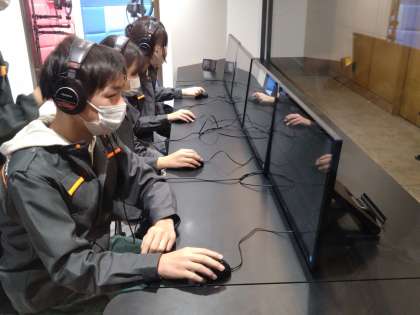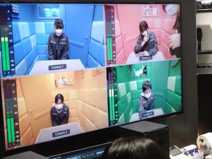 このブースは動画を自分で撮影して、編集します。自分で撮影している様子がモニターに映され、活動の様子がよくわかります。