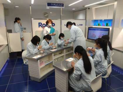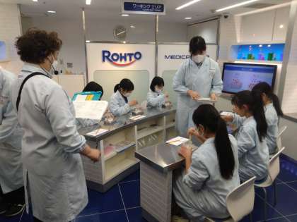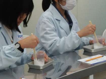 薬の会社のブースです。薬をビーカー内で混ぜて調合していました。
