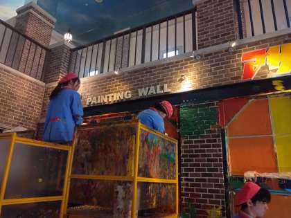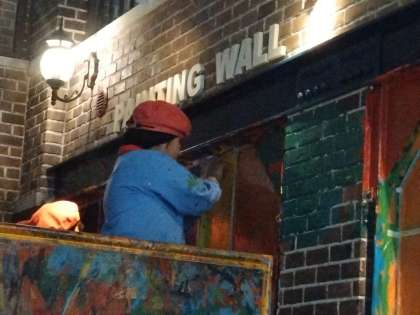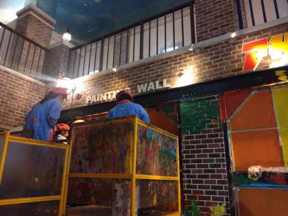 ペンキ塗りです。専用の作業服に着替えて、実際にペンキで壁を塗っていきます。