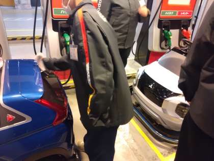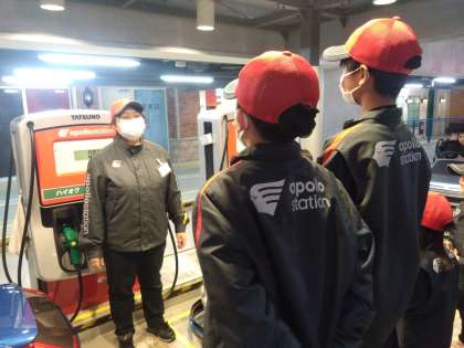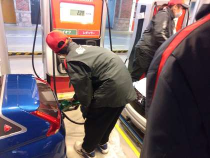 ガソリンスタンドのブースです。給油体験やガラス拭きをしました。特に接客態度を丁寧に教えていただきました。