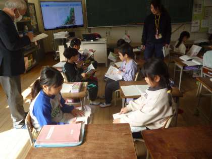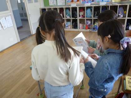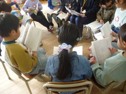1年生は国語で「スイミー」を読んでいます。自分の好きな場面を決め、互いに読み合いました。最後はみんなで輪になって読んでいきました。読み方がどんどん上手になっています。