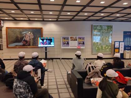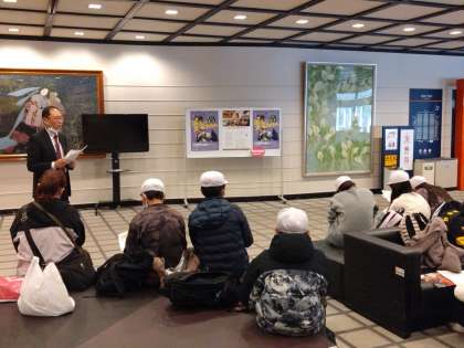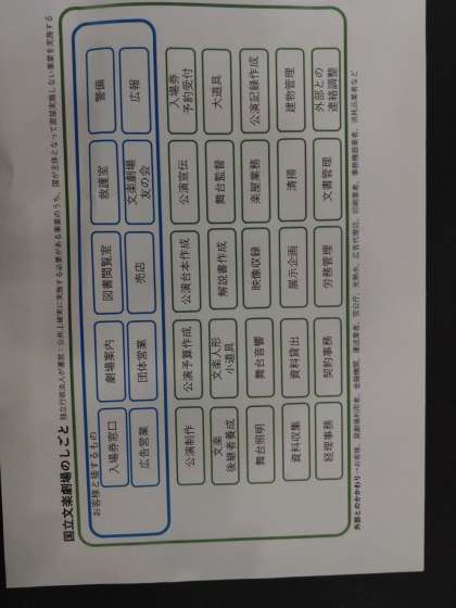 映像と係の方の説明で文楽のことを学びました。仕事内容も詳しく教えていただきました。