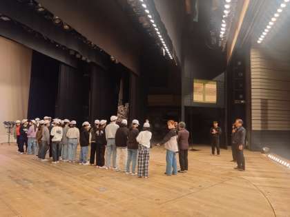 舞台に上がりました。舞台が回転するのを実際に乗って体験しました。感動の体験です。