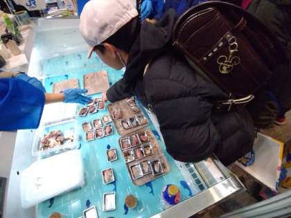 加工機械の見学のあとは試食の再開です。もう、かなりお腹がいっぱいになってきました。刺し身はあじ、さわら、鰹などを自由に食べることができました。