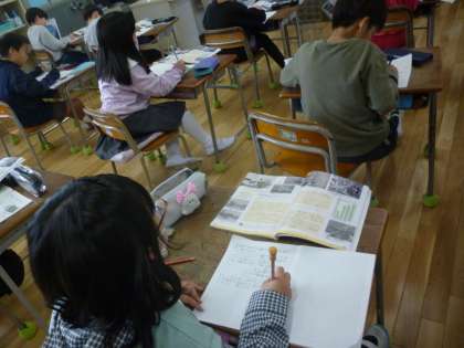 3年生は社会科で大阪市について学習しています。今日は御堂筋ができた時代について学びました。大阪駅ができた時の様子など、大阪市の発展に驚いていました。