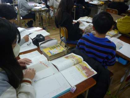 4年生はアフガニスタンの物語「世界一美しいぼくの村」の学習を始めました。最初の学習なので、むずかしい言葉の意味を辞書で調べていきました。