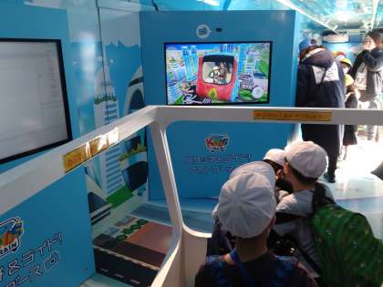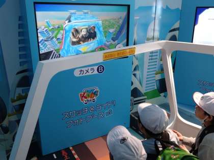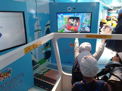 バーチャル時空ツアーです。自分のぬり絵が空を飛ぶ乗り物になり、自分たちが乗って、時空を旅します。手を振ったり立ち上がったりと、ご機嫌な時間です。
