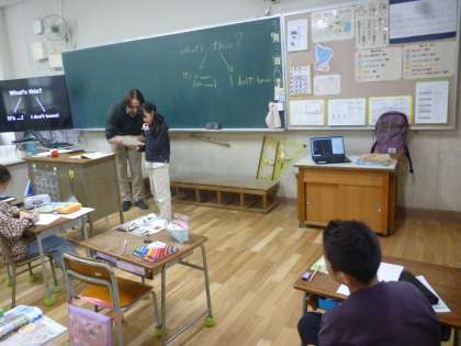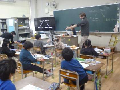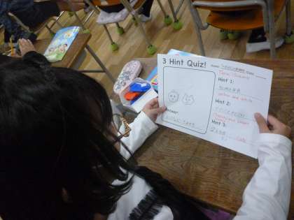 3年生は英語で出題するクイズを考えていきました。キャラクターなど内容は多彩です。みんなの前で英語で出題していきました。みんなよく考えて正解していました。