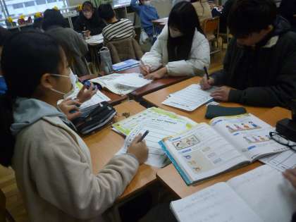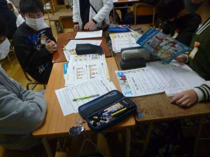 6年生は6年間の小学校の思い出を英語で書いていき、友達に教えていきました。卒業前にふさわしい学習で、みんなたくさん思い出して話していました。