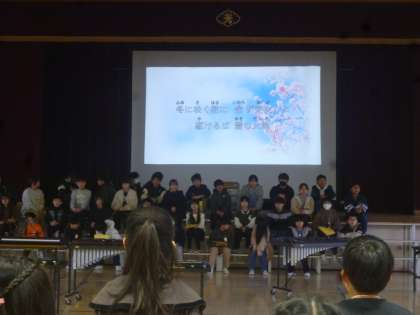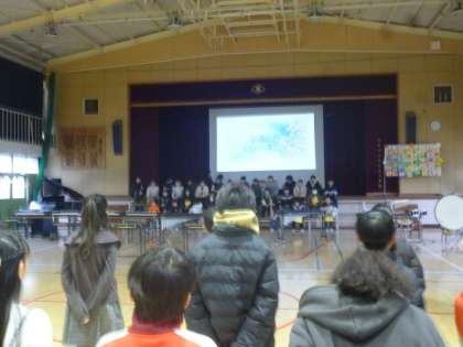 続いて4年生と5年生です。その後、在校生が6年生に「僕のこと」の歌をプレゼントしました。しっかりと歌っており、6年生の心に響いたことだと思います。