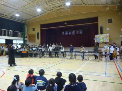 続いて合唱「スパークル」合奏「僕らまた」を在校生へのお礼の気持ちを込めて披露しました。在校生への感謝の気持ち、卒業する気持ちがしっかりと伝わってきました。