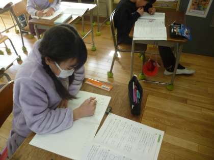 3年生は3年生の算数のまとめの学習をしました。まとめの範囲が広いので、思いdしながら問題を解いていきました。